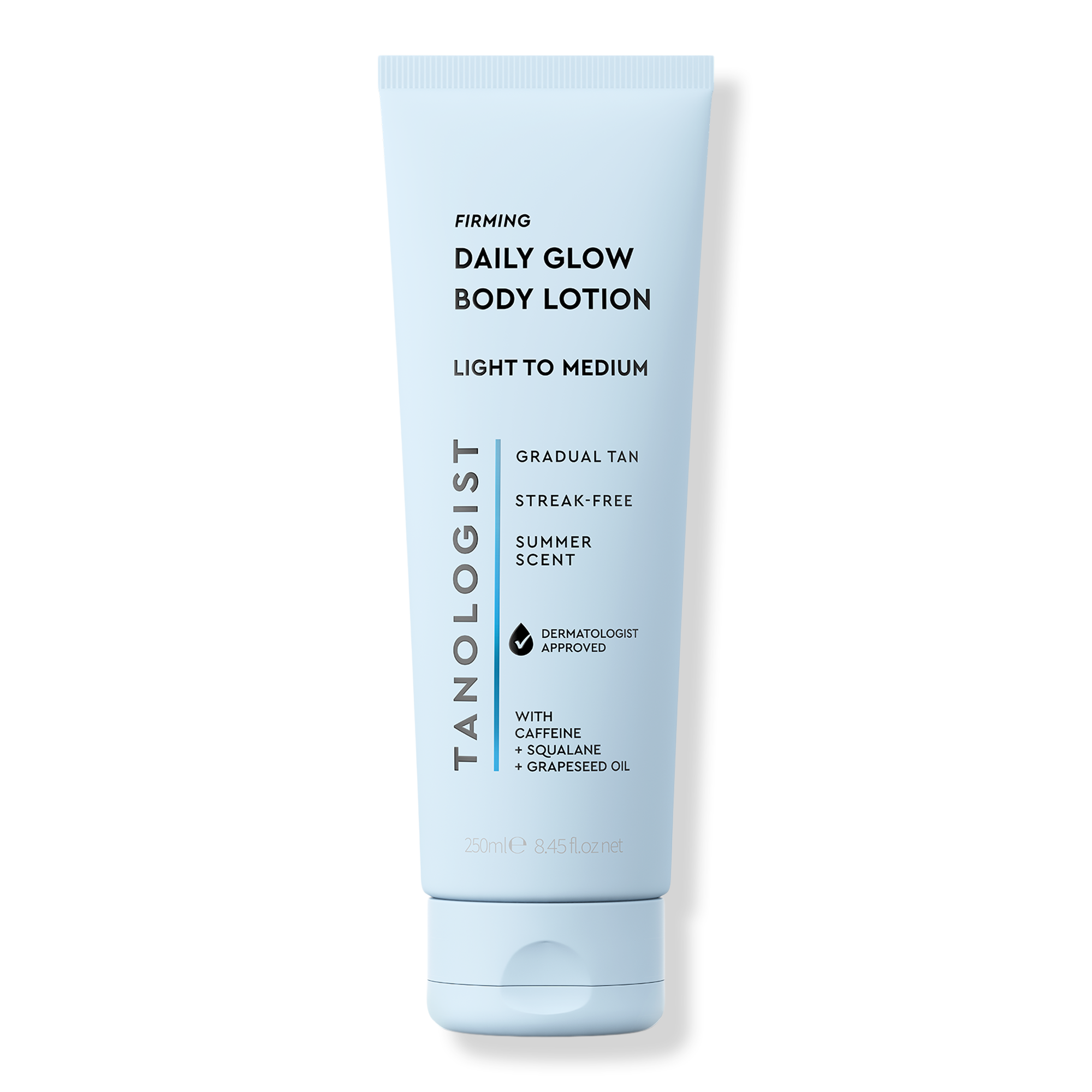 Tanologist Daily Glow - Firming Gradual Tanning Lotion is a daily moisturizer formulated with Caffeine, Squalane & Grapeseed Oil to help sculpt, smooth and tone skin while delivering a gradual sun-kissed glow.