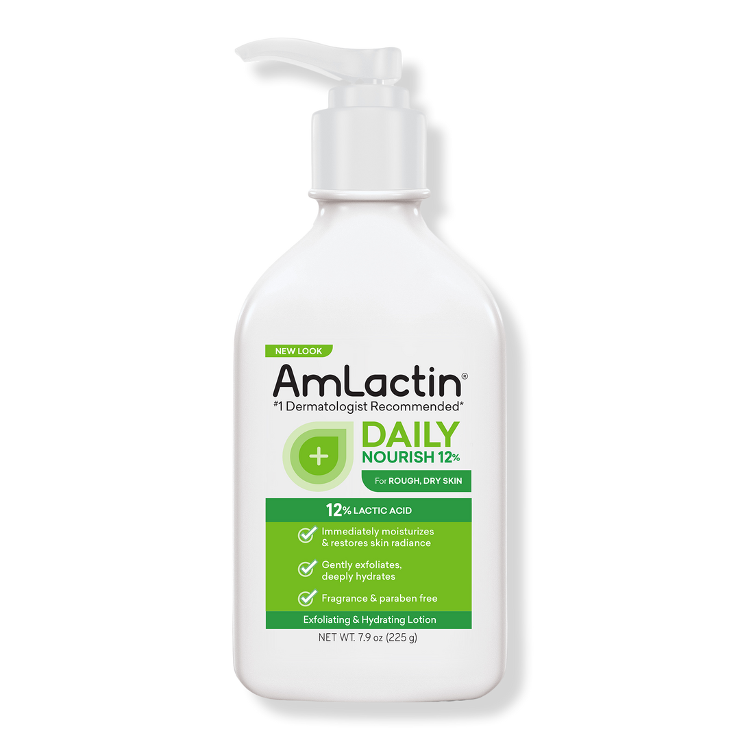 AmLactin Daily Nourish Lotion with 12% Lactic Acid AHA uncovers softer, smoother skin with a multi-tasking formula that gently exfoliates & deeply hydrates.