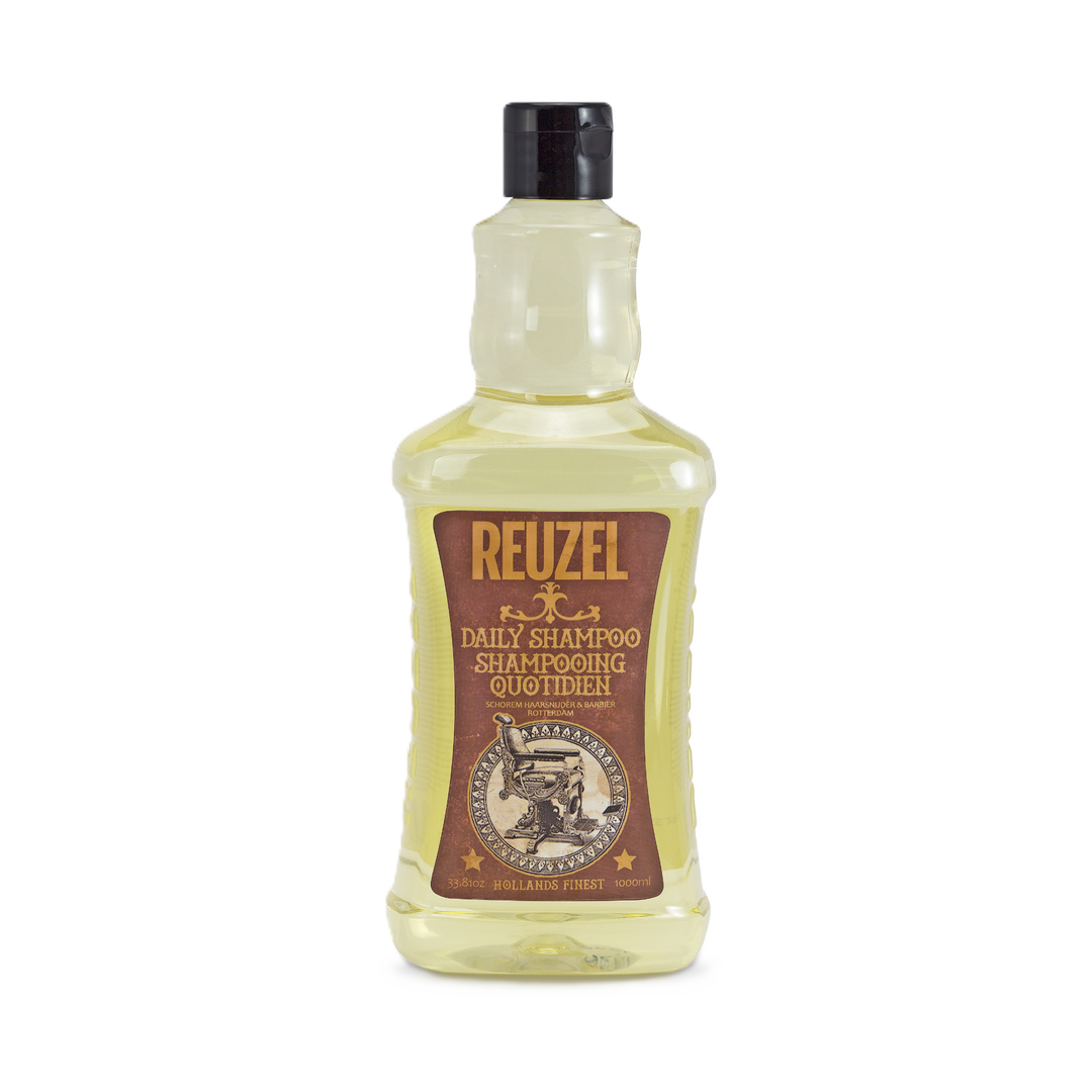 REUZEL® Daily Shampoo is formulated with our Proprietary T4 Tonic Blend of Witch Hazel, Nettle Leaf, Rosemary, and Horsetail Root. Ideal for most hair types, this refreshing shampoo is gentle enough for frequent use and helps cleanse, balance the scalp, and strengthen hair.Â