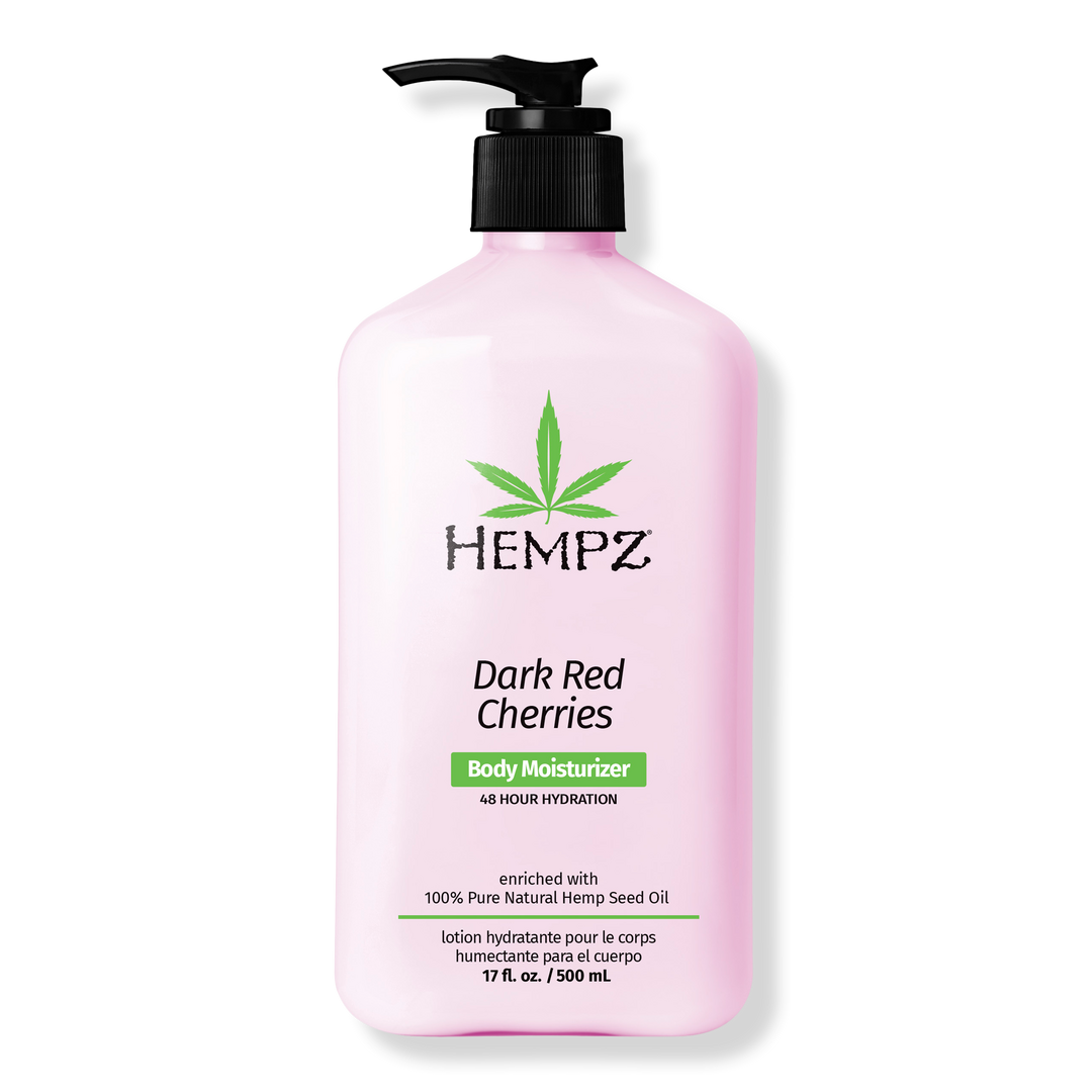 Get Cherry-picked hydration with Hempz Dark Red Cherries Body Moisturizer! This ultra-light, fast-absorbing formula keeps your skin irresistibly soft and hydrated. Infused with a juicy blend of Sweet Cherry Extract, Aloe Vera, and Hemp Seed Oil to help moisturize and strengthen the skin barrier.