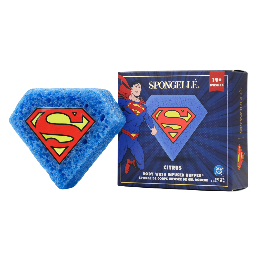 Unleash your inner hero with Spongellé’s® official DC Super Hero Collection. Rise to new heights with the Superman™ Body Wash Infused Buffer®, infused with an energizing Citrus fragrance that captures the Man of Tomorrow’s unbreakable spirit and uplifting power.