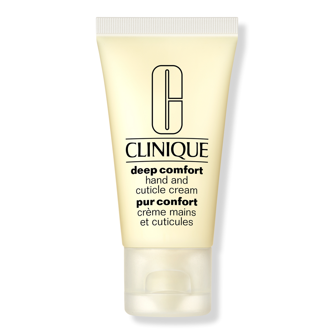Clinique Deep Comfort Hand and Cuticle Cream treats hands to 12-hour hydration, soothing comfort.