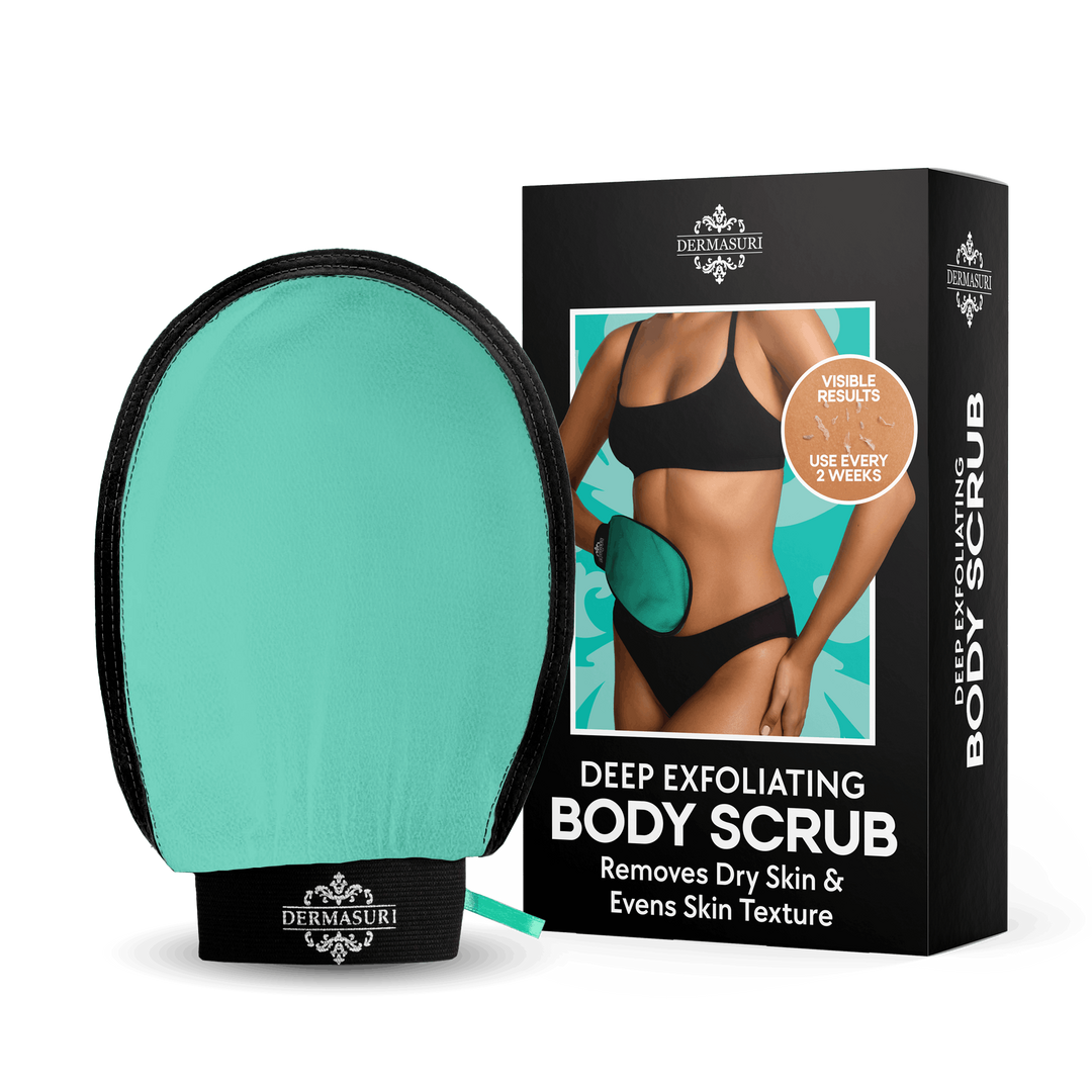 - Dermasuri Deep Exfoliating Glove uses a plant-based microfiber mesh activated by water to lift away dead skin and impurities, leaving skin visibly smoother and refreshed. Exfoliates and smooths to improve skin texture and help moisturizers penetrate for better hydration; works with just water and also preps skin for even sunless tanning.