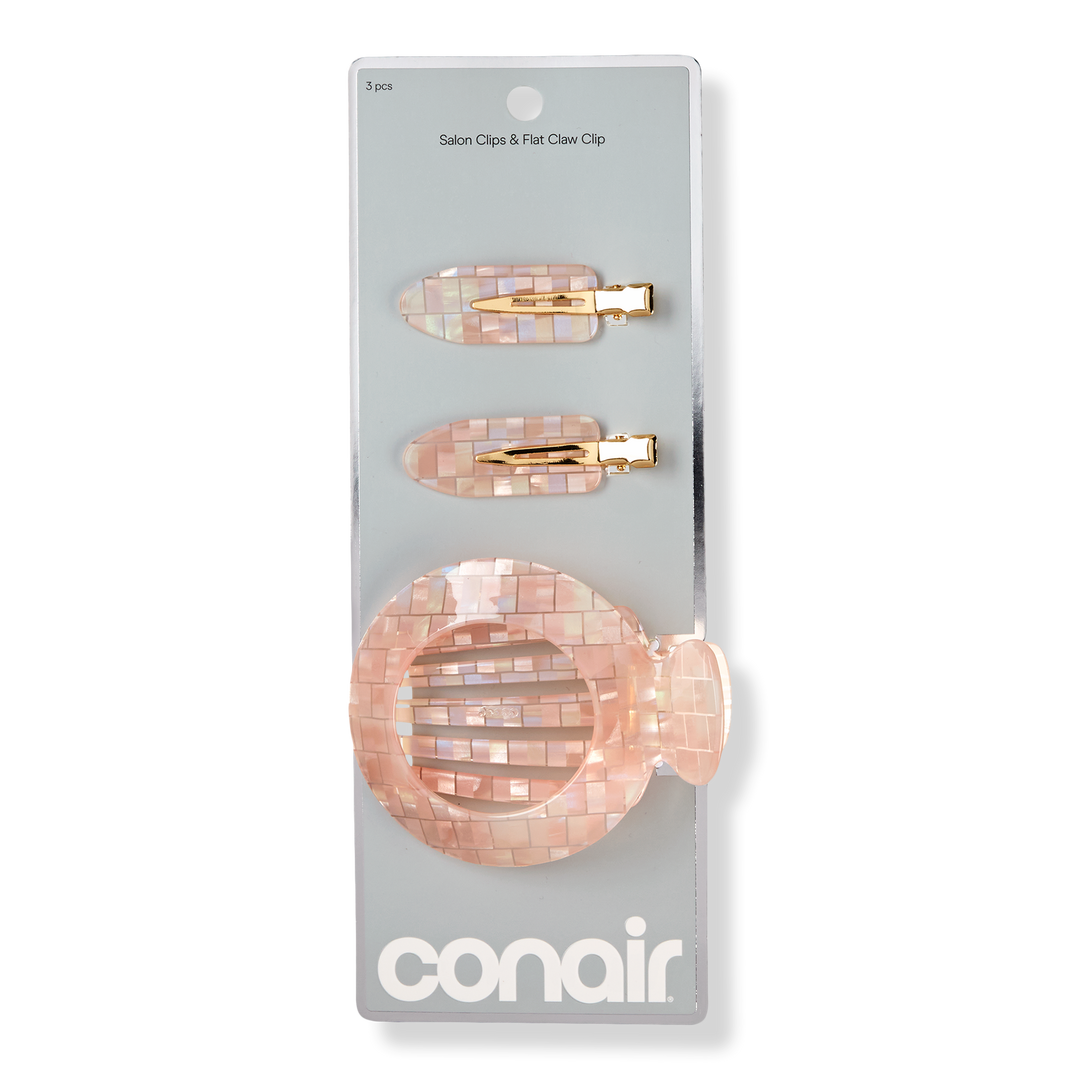 Style hair with ease using the Conair Dent-Free Clips and Claw Clip Set. Designed to hold hair securely without creasing, this coordinating trio makes it simple to section, clip back, and finish styles.