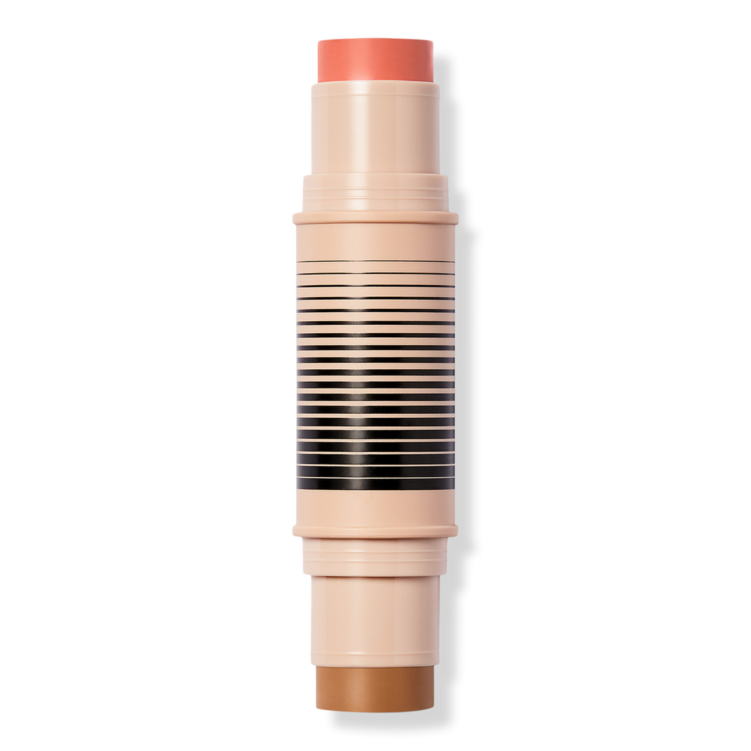 Swipe the bronzer on your forehead, nose, cheekbones, and jawline for warmth and dimension. Add blush to apples of cheeks and anywhere else you want a pop of color. Apply directly from the stick or tap Dup Brush Face to stick, blend with the Duo Brush Face or your fingertips. Start with your base primer or foundation, then layer the duo, and finish with a setting powder or baked blush/bronzer.