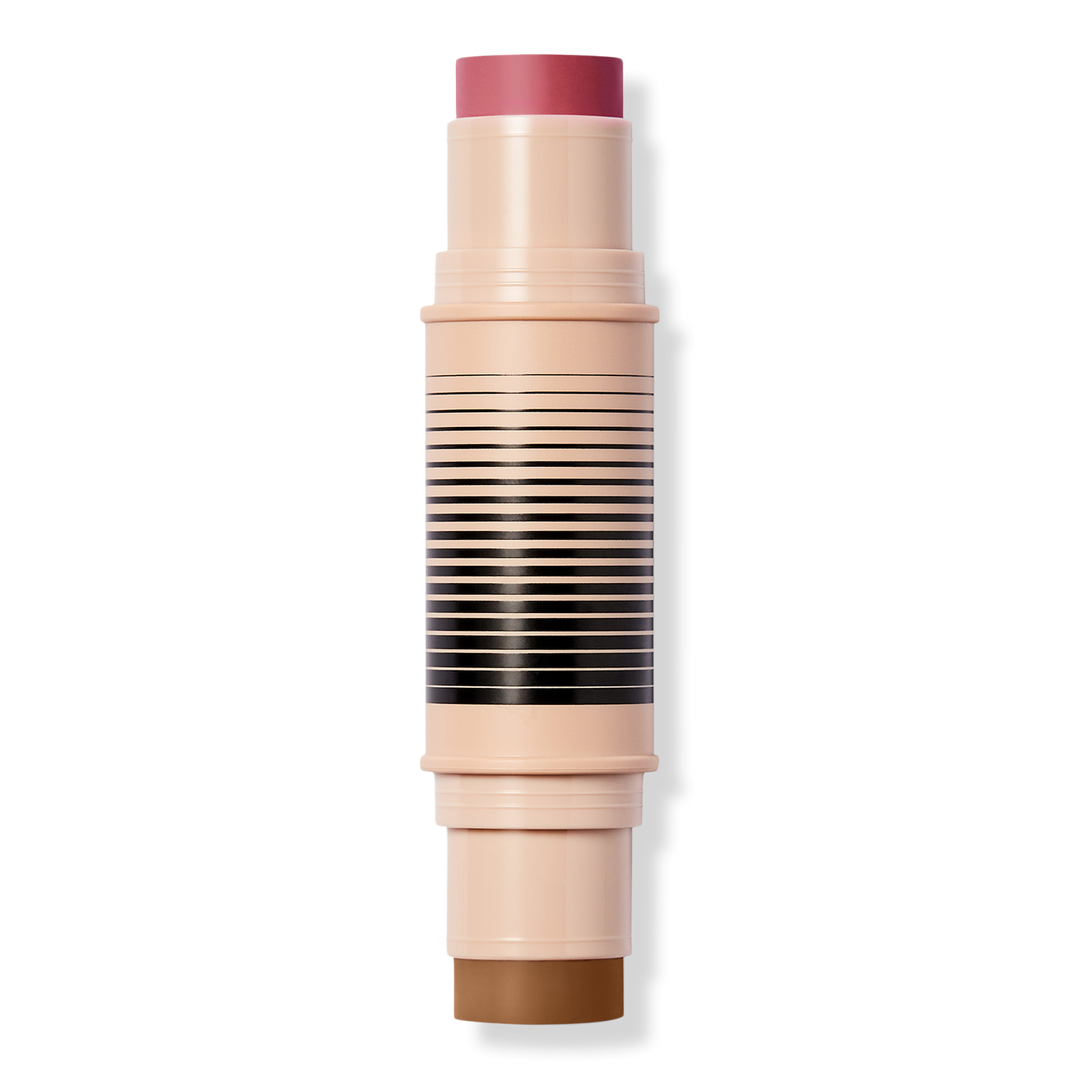 Swipe the bronzer on your forehead, nose, cheekbones, and jawline for warmth and dimension. Add blush to apples of cheeks and anywhere else you want a pop of color. Apply directly from the stick or tap Dup Brush Face to stick, blend with the Duo Brush Face or your fingertips. Start with your base primer or foundation, then layer the duo, and finish with a setting powder or baked blush/bronzer.