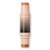 Swipe the bronzer on your forehead, nose, cheekbones, and jawline for warmth and dimension. Add blush to apples of cheeks and anywhere else you want a pop of color. Apply directly from the stick or tap Dup Brush Face to stick, blend with the Duo Brush Face or your fingertips. Start with your base primer or foundation, then layer the duo, and finish with a setting powder or baked blush/bronzer.