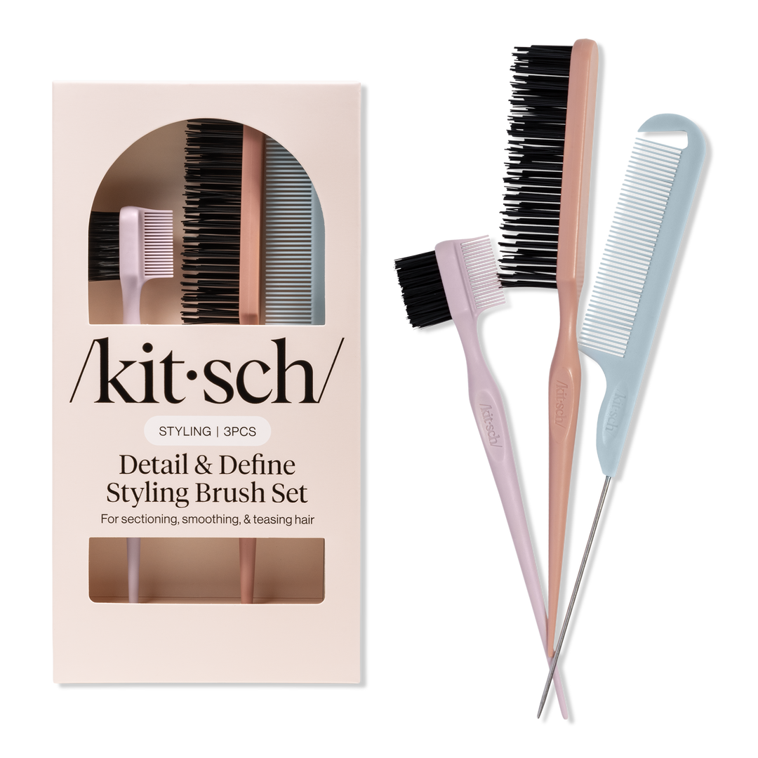 Kitsch Detail & Define Styling Brush Set includes three essentials—pintail comb, edge brush, and teasing comb—for parting, smoothing, and polishing with precision. Perfect for sleek ponytails, braids, or updos, it works on all hair types.
