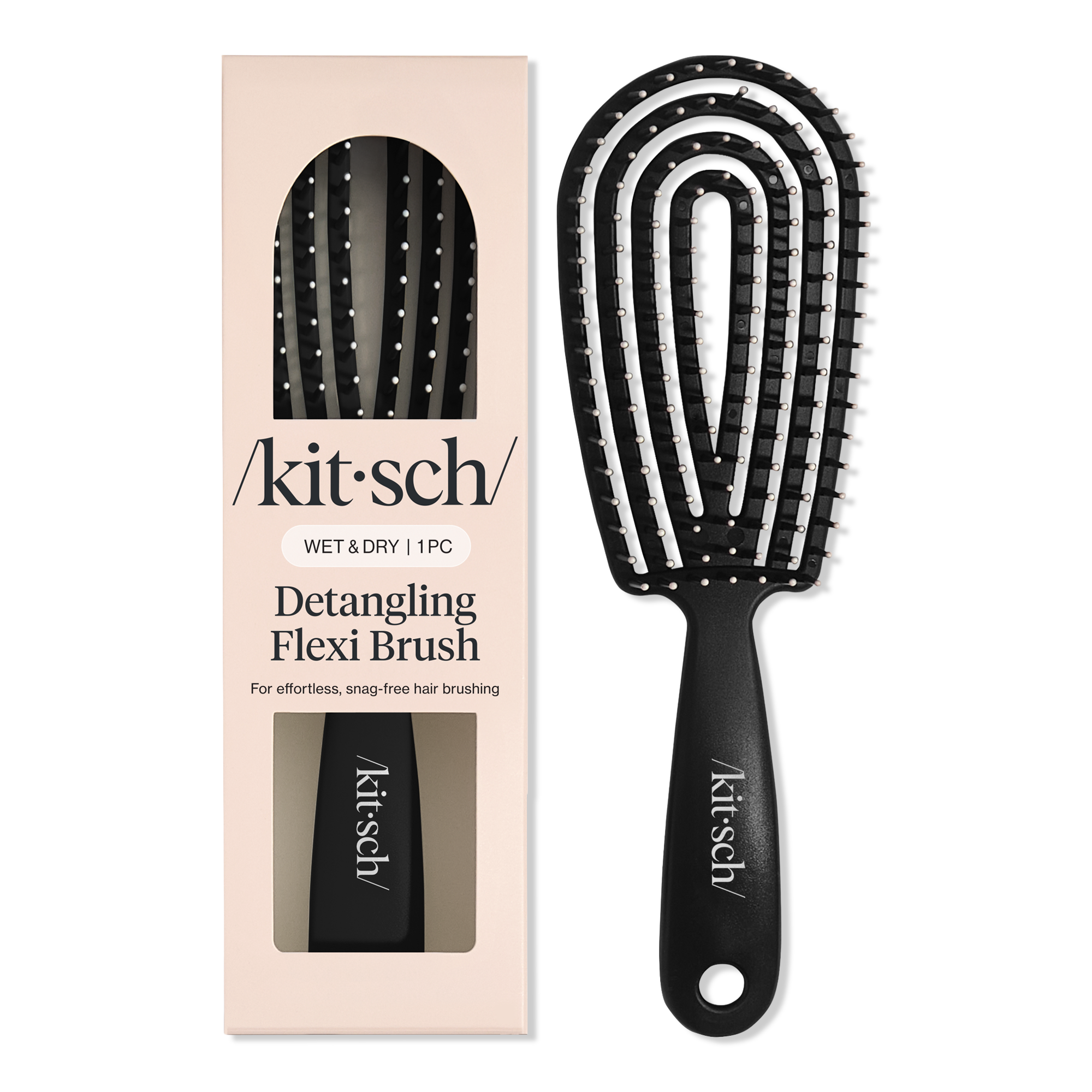 Say goodbye to tangles and hello to shine with the stylish Kitsch Detangling Flexi Brush. Its flexible bristles effortlessly glide through knots, smoothing your hair while giving your scalp a soothing massage. It's the perfect companion for quick styling and works wonders on all hair types!