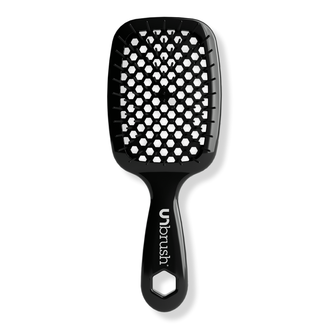 UNbrush® gently yet thoroughly extracts knots and tangles from even the most unruly hair, painlessly and effortlessly. Featuring the perfect blend of 105 dual length bristles, combined with an ultralight high performance handle, UNbrush® helps reduce styling time and prevents hair from catching.