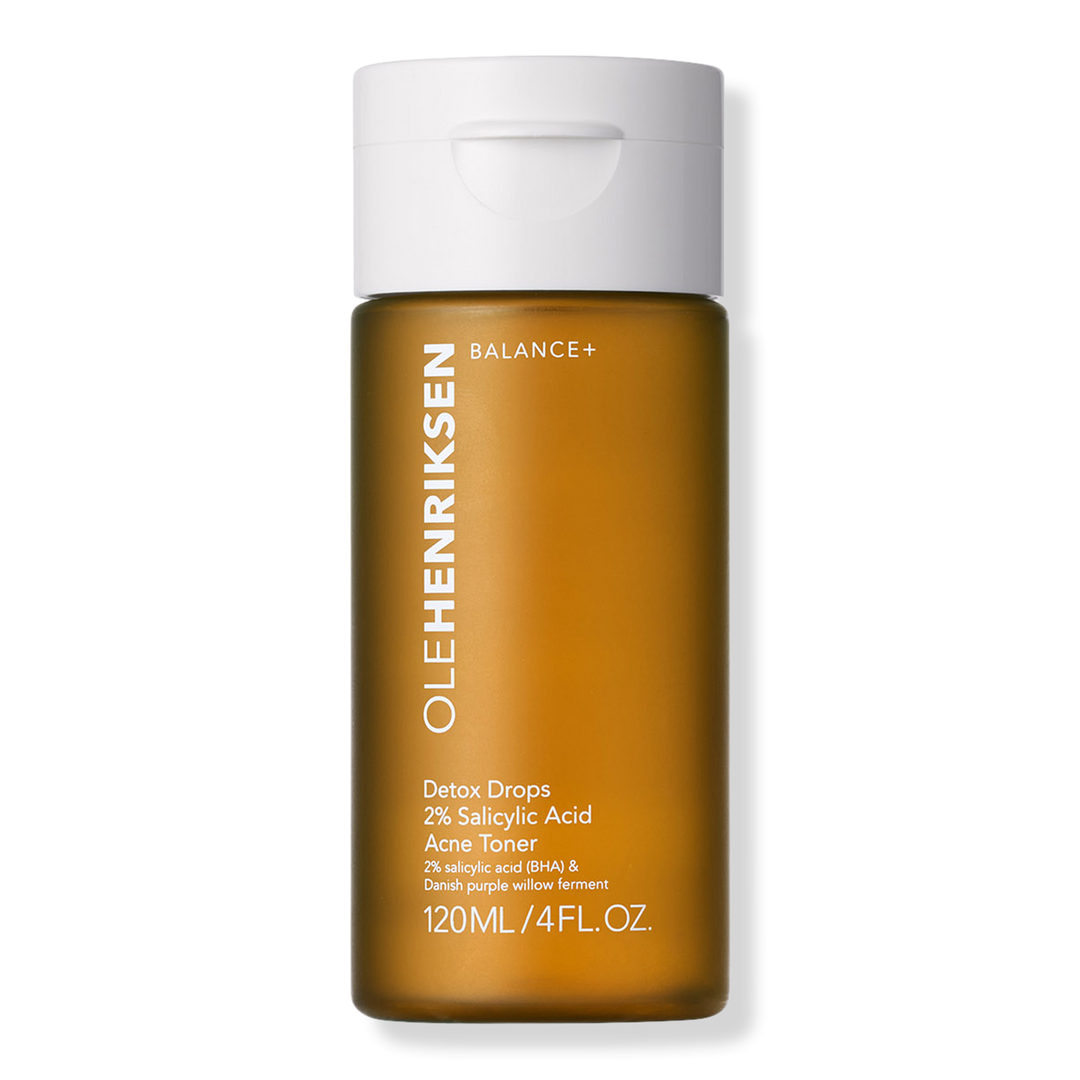 The OLEHENRIKSEN Detox Drops 2% Salicylic Acid Acne Toner is a daily BHA toner with 2% salicylic acid and Danish purple willow ferment to improve acne and prevent future breakouts for visibly clearer skin in 1-week.