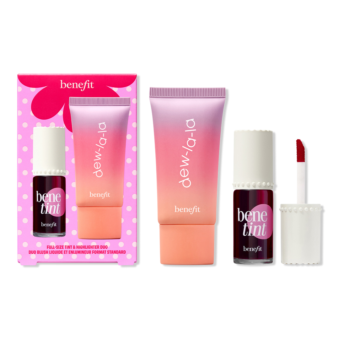 Benefit's Dew The Benetint Duo is pretty much the cheek duo for getting rosy & radiant. Glide Dew-la-la liquid highlighter all over face for an effortless, skin-loving glow, then dot on Benetint for a sheer, natural-looking rosy flush on cheeks and lips.