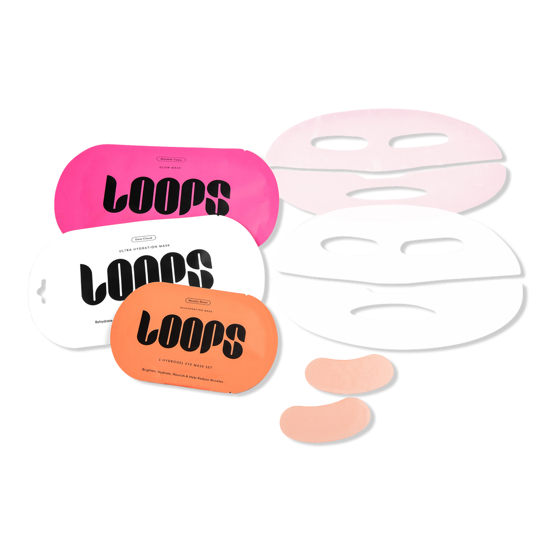 Dew Crew by LOOPS includes 2 specially formulated hydrogel face masks and 1 hydrogel eye mask. This set features Double Take to glow, Dew Cloud for ultra hydration, and Weekly Reset Under Eye to rejuvenate — your ultimate trio for dewy, refreshed skin.