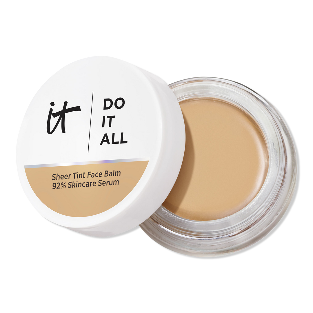 IT Cosmetics Do It All Sheer Tint Face Balm is your ultimate 4-in-1 tinted moisturizer that transforms skin instantly and over time. This next-generation serum combines sheer, buildable coverage with 92% skincare ingredients for a radiant look that firms, hydrates, and minimizes the look of lines.