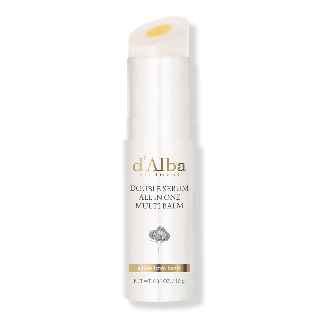 d'Alba Piedmont Double Serum All In One Multi Balm Stick is a dual-layer solid balm that delivers targeted moisture, brightening, and wrinkle support, softening dry areas and enhancing radiance with repeated use.