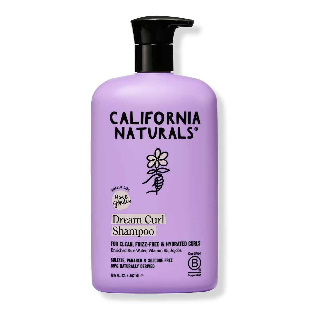 No dryness, no flat curls, no frizz - just happy, bouncy curls. California Naturals Rose Garden-scented Dream Curl Shampoo gently cleanses all curl types while Enriched Rice Water and Vitamin B5 strengthen and smooth, and Jojoba Oil tames frizz and locks in moisture.