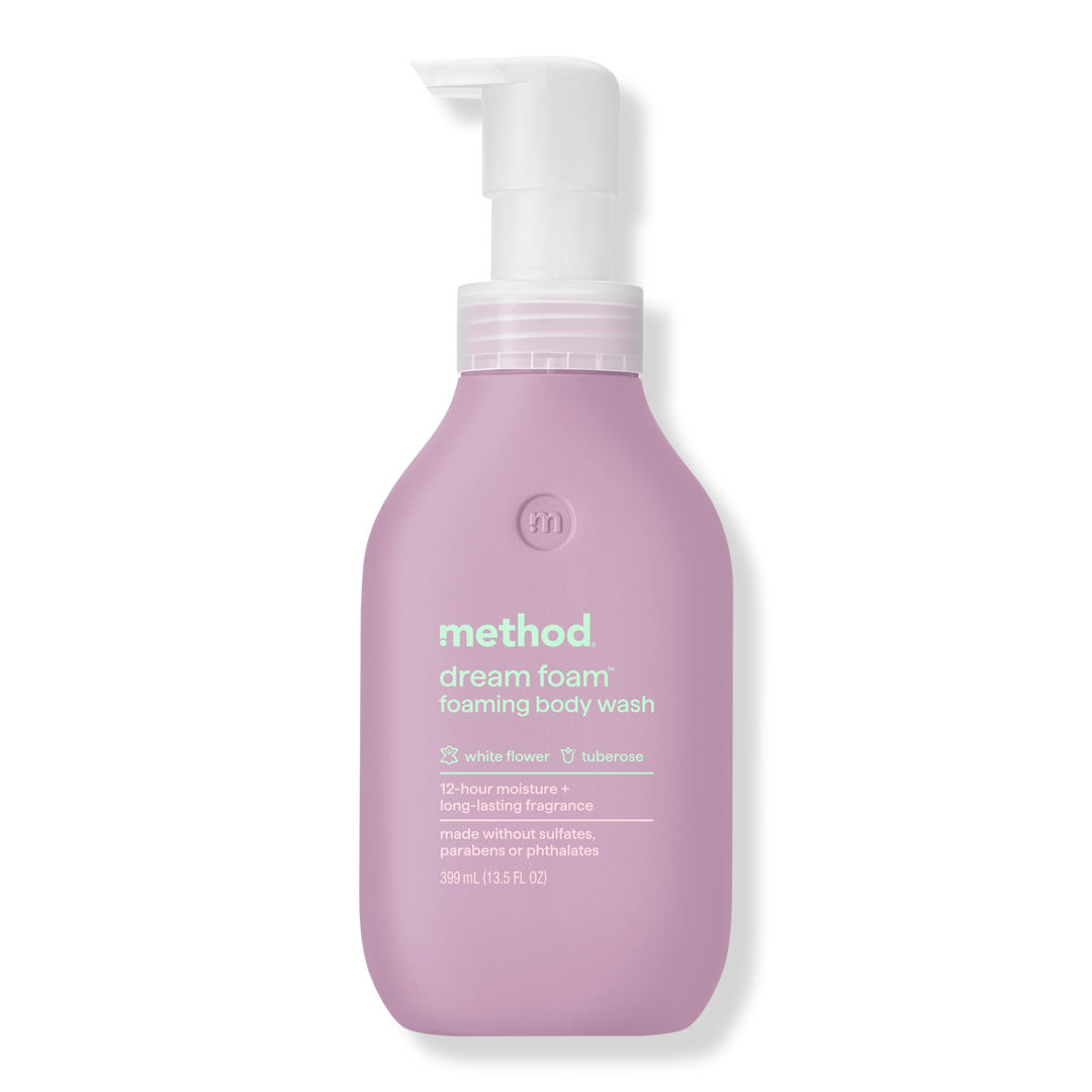 Method's Dream Foam Foaming Body Wash is dermatologist-tested for a silky + smooth skin-sation. It gently cleans and keeps your skin hydrated and smooth for up to 12 hours. You’ll feel serene and clean thanks to delightful puffs of light fluffy floof that are as soft as a puppy's ears.