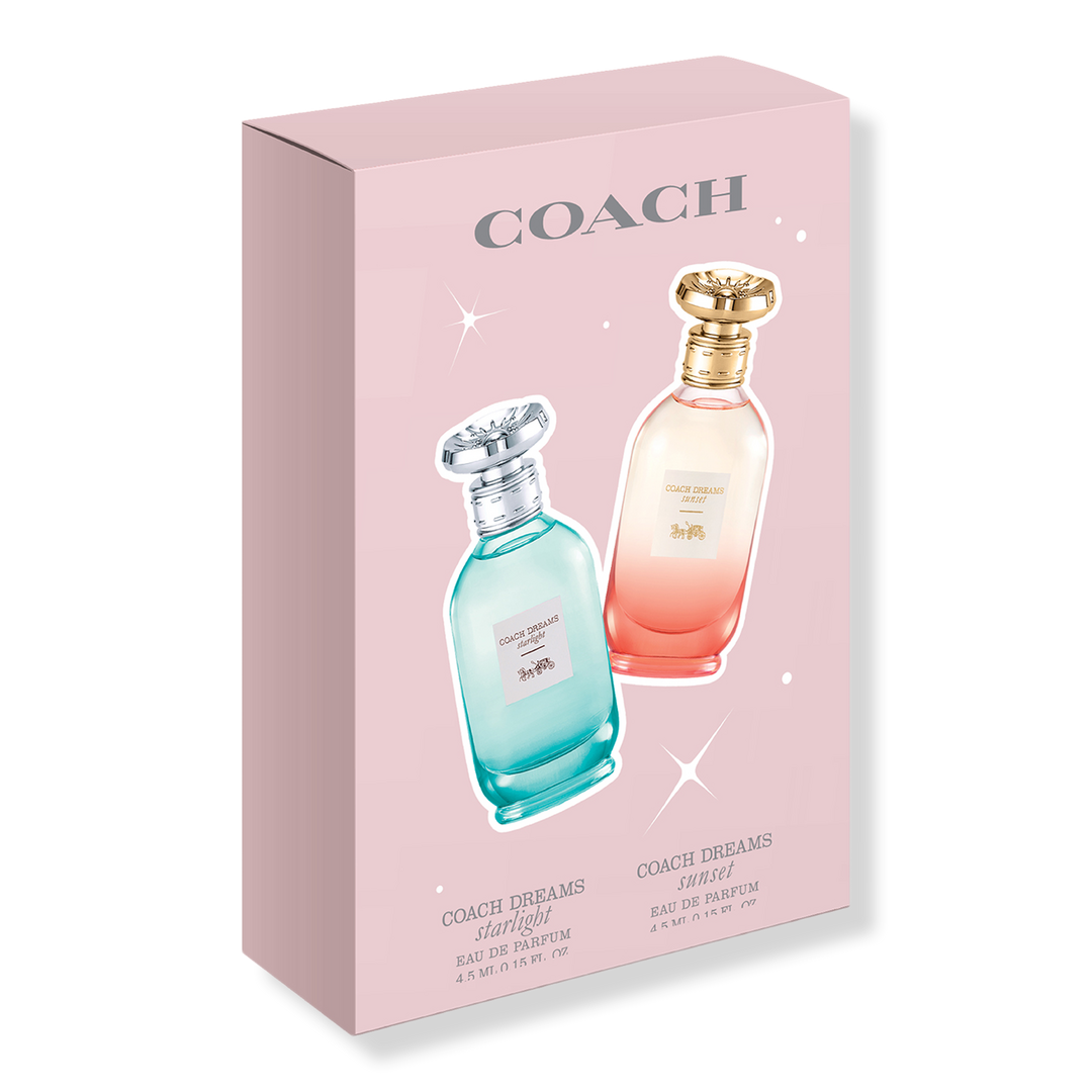 Experience the Coach Dreams collection with this chic gift set including a 0.15 fl. oz. Coach Dreams Sunset Eau de Parfum Deluxe Mini and 0.15 fl. oz. Coach Dreams Starlight Eau de Parfum Deluxe Mini.