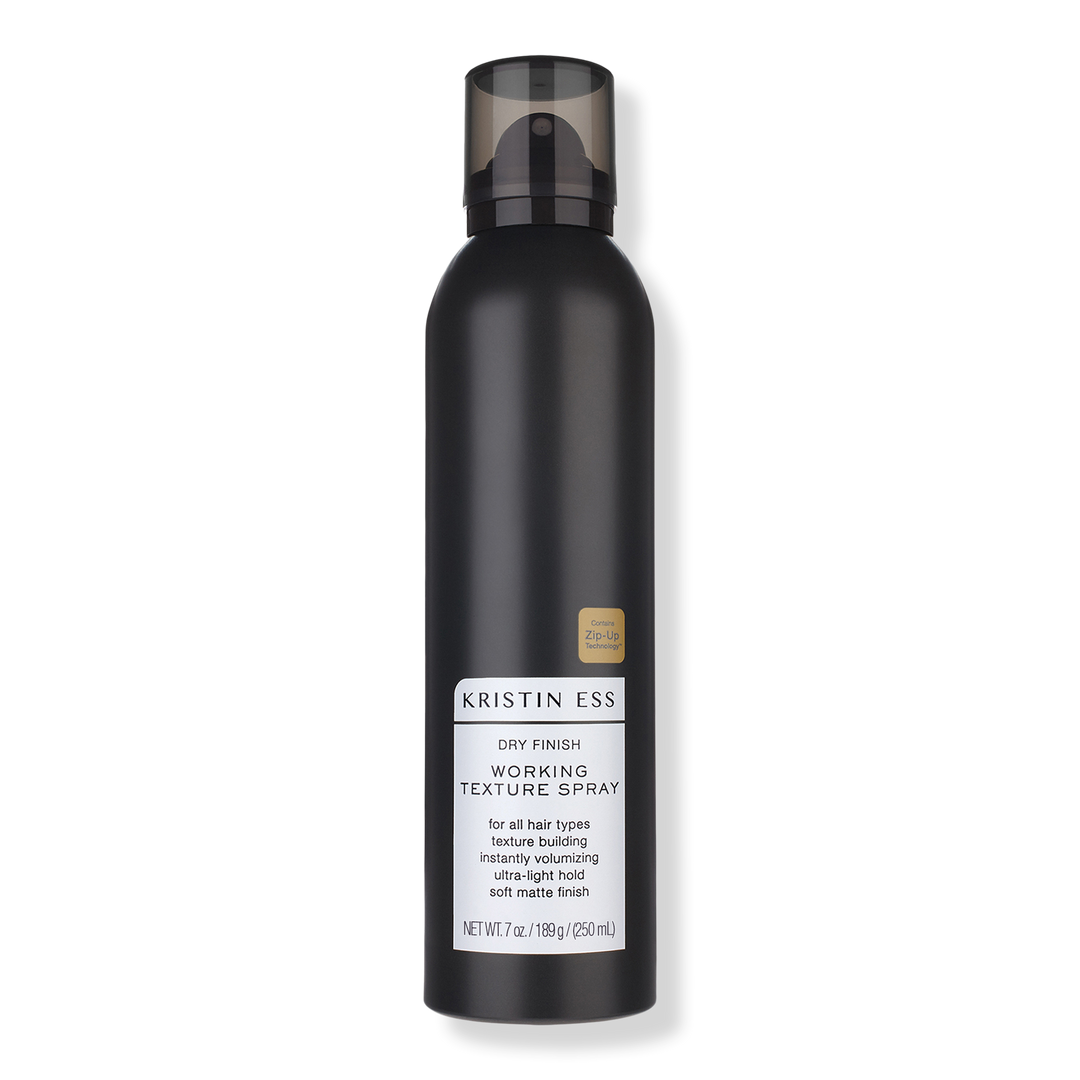 Create a soft, matte texture or lived-in look with Kristin Ess Hair's Dry Finish Working Texture Hair Spray for Volume + Texture. For instant volume + texture with ultra-light hold.