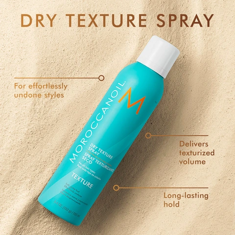 Moroccanoil Dry Texture Spray is a dry, argan-oil-infused texturizer for tousled, undone styles with lasting hold and volume.
