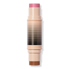 Using their double-ended Duo Brush Face, brush the dome from one or both sides to create your own custom-mixed shade. Swipe onto skin wherever you want a sunkissed rolling glow.