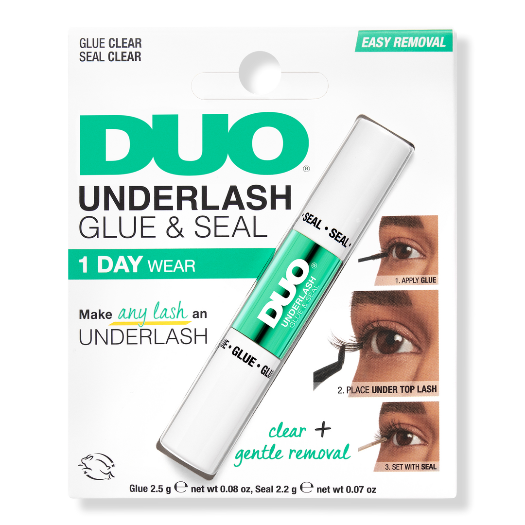Duo Underlash Clear Glue & Seal is a strong yet gentle formula that delivers secure 1-day wear plus triple vitamin care. 2-step tube features Clear Glue to hold lashes all day & Clear Seal to remove tacky residue, set & protect. Applicator glides on like mascara for targeted underlash placement.
