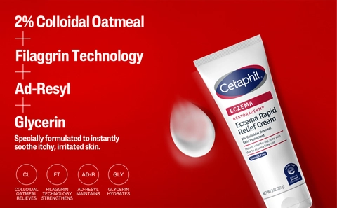Cetaphil Eczema Rapid Relief Cream is proven to provide instant relief for dry, itchy skin due to eczema flare-ups