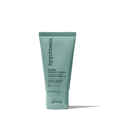 Hypothesis Eczema Therapy Cream deeply hydrates to replenish the skin barrier. Formulated with 1% colloidal oatmeal and ceramides, this pH-balanced formula relieves the itch of eczema and supports an optimal pH level for a healthy microbiome.
