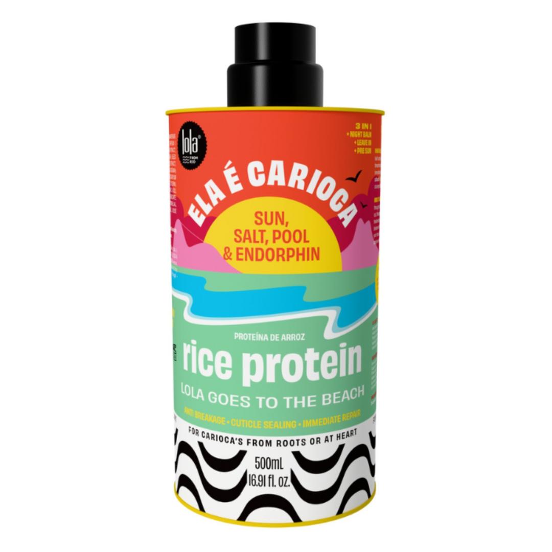 Overnight Balm: Apply Rice Protein evenly throughout damp hair. Leave in for at least 10 minutes or longer/overnight as desired. Rinse out, then apply Ela é Carioca Shampoo and Nourishing Hair Mask to complete your intensive treatment. For best results, use once a week. Sun Protection: Apply to dry or damp hair before or after sun exposure and after each plunge on the beach. Dose a pea-sized amount in your hands. Comb through lengths and ends. Leave In: Blend a small amount into your hands and apply evenly through damp hair—style as usual.