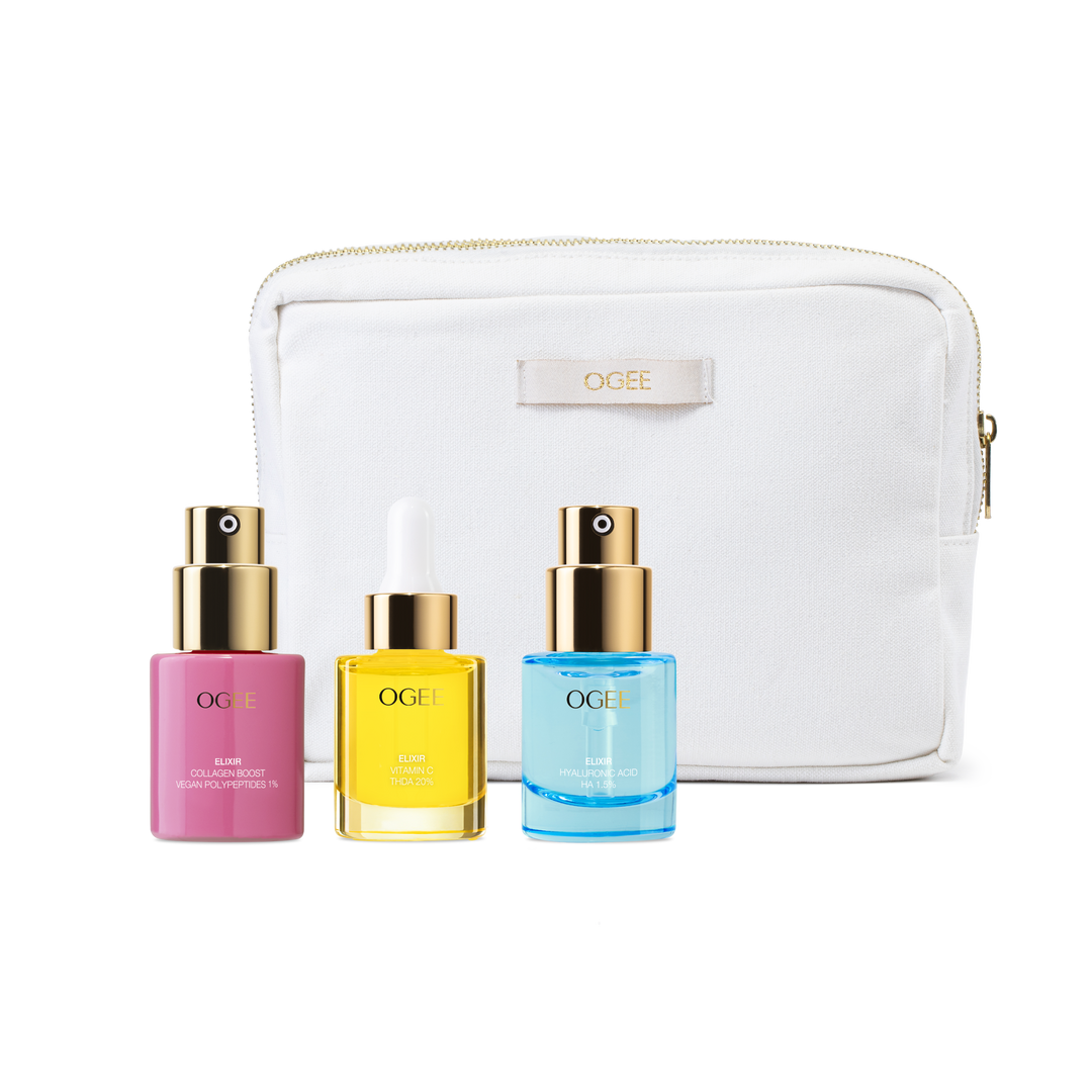 A targeted trio of powerful plant-based elixirs designed to hydrate, brighten, and firm for visibly radiant, revitalized skin. Pick your potion: Collagen Boost for plumping, Vitamin C for brightening, and Hyaluronic Acid for hydrating.