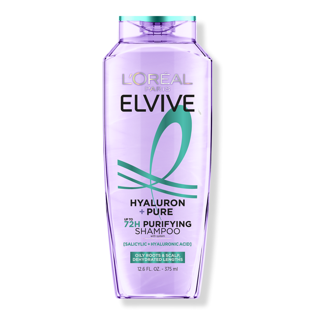 Inspired by skincare, L'Oréal Paris Elvive Hyaluron Plus Pure 72H Purifying Shampoo with Hyaluronic Acid & Salicylic Acid purifies scalp and hydrates lengths for 72H of freshness and moisture.