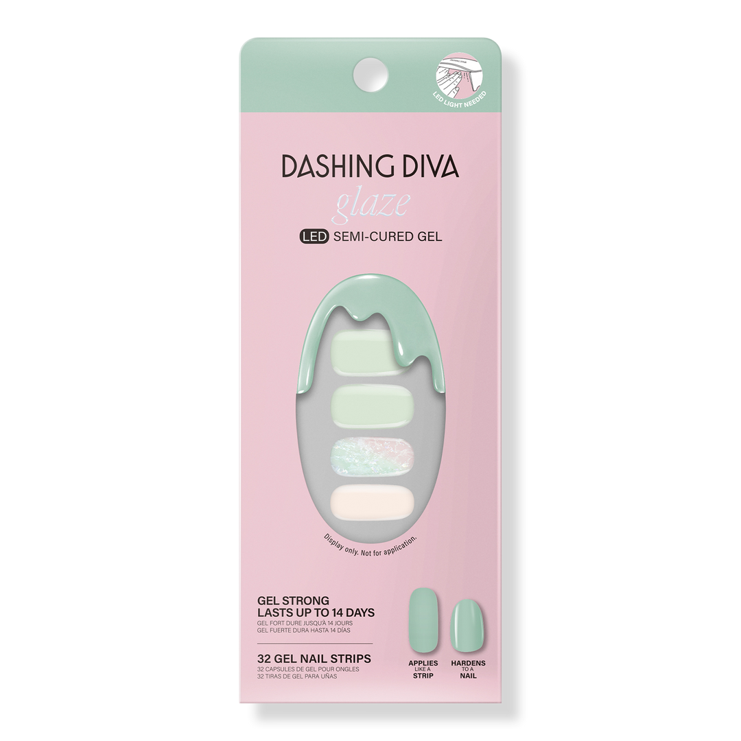 Get the pro-finish and sculpted effect of a salon gel manicure at home with ease with Dashing Diva's Emerald Marble GLAZE. GLAZE innovation is a semi-cured gel strip that cures under an LED lamp, delivering salon results: molded shape, mega volume, mirror shine that's gel strong for up to 14 days.