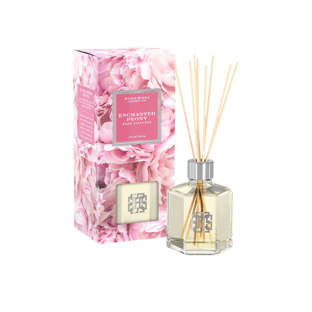 - Looking to add a subtle, long-lasting fragrance to your home? HomeWorx reed diffusers are the perfect choice for elevating any room with inviting scents that last for weeks. Crafted with premium, essential oil-infused fragrances, each diffuser is designed to release a continuous scent, providing a hassle-free alternative to candles. Fragrance Notes: Velvet Peony, Pink Camellia, Leafy Greens, Golden Amber, and Fresh Blackberry