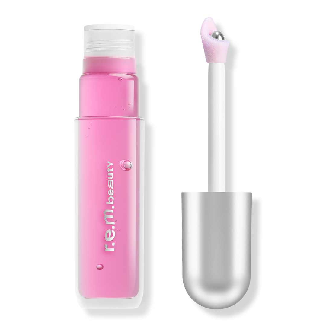 r.e.m. beauty essential drip lip oil drenches lips in a sheer wash of mega glossy, ultra-hydrating shine with a unique scent, hint of color and botanical infusion that's unique to each shade.