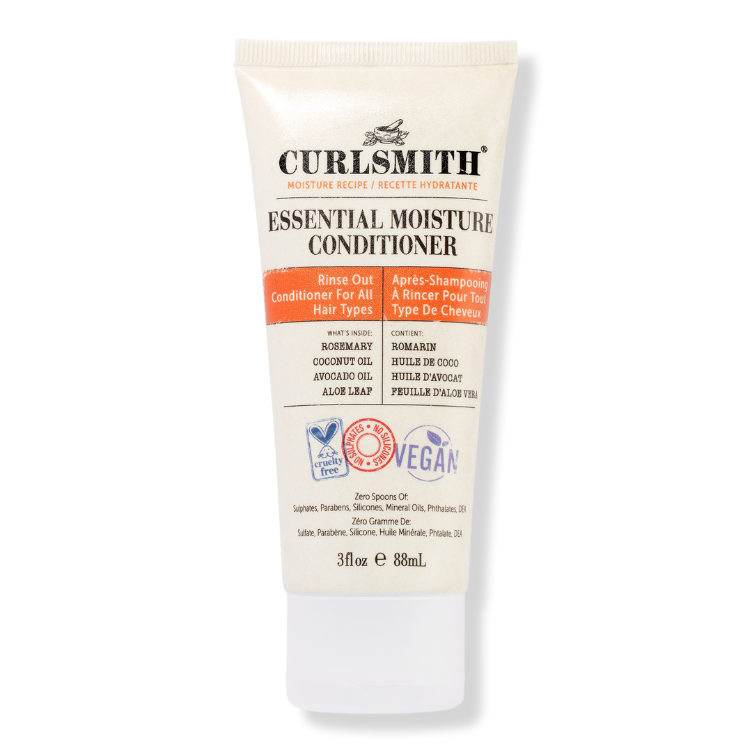 Curlsmith Essential Moisture Conditioner is an everyday lightweight rinse-out conditioner that provides nourishment and weightless moisture.