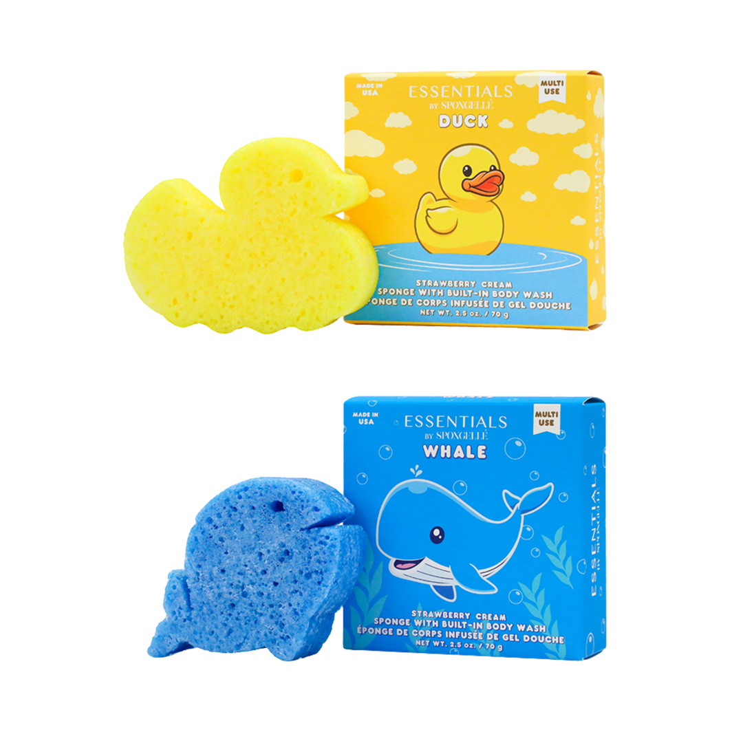 Turn bath time into fun time! With cute duck and whale shapes, these fruity-scented sponges are filled with gentle body wash that cleanses and nourishes. Perfect for ages 3+, they make scrubbing playful and easy.
