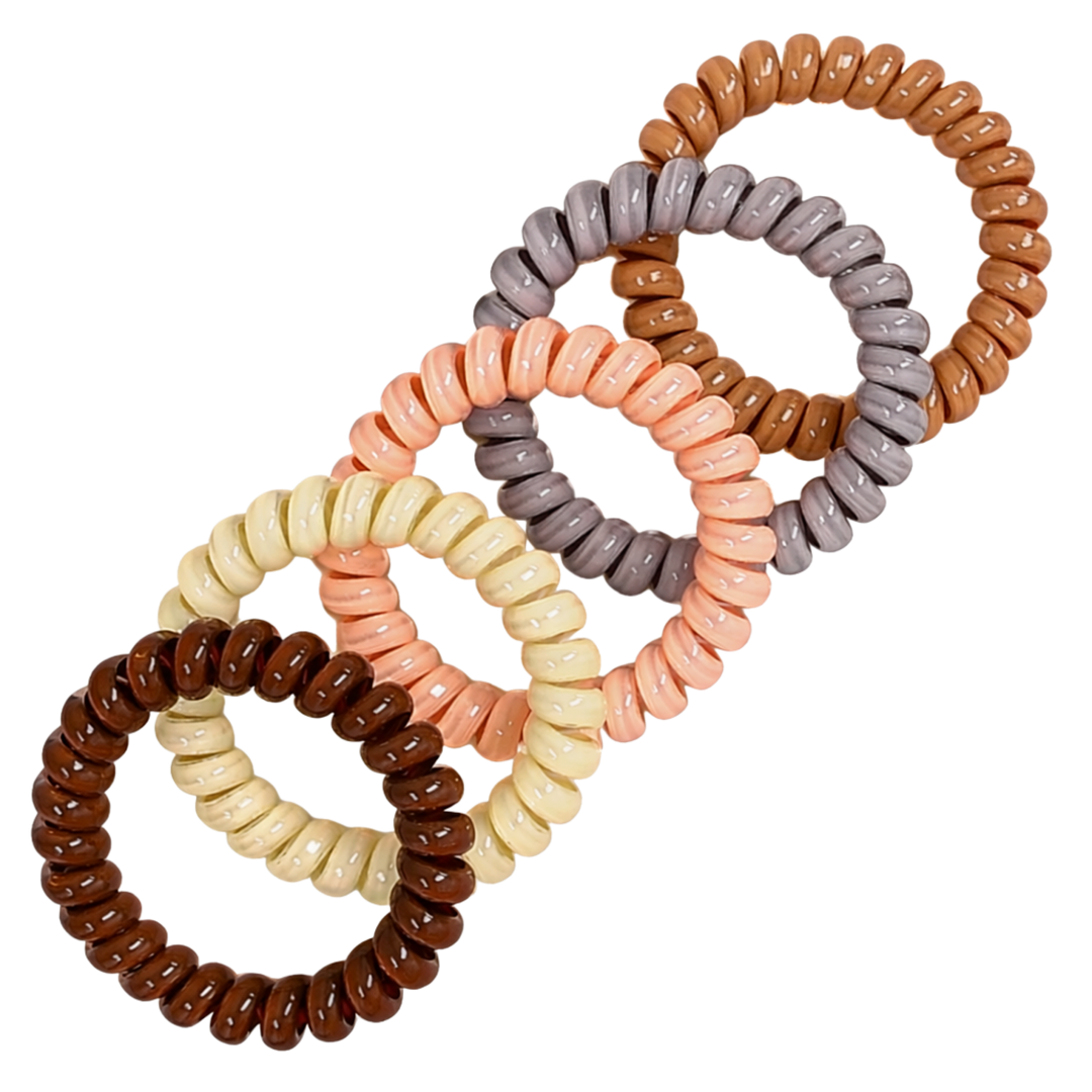 - Our "Everyday Neutral Hair Twists" – the essential hair accessory for those seeking simplicity and style. These versatile hair coils come in a timeless palette of neutral colors, designed to effortlessly blend with any outfit, making them your go-to choice for daily hair styling.