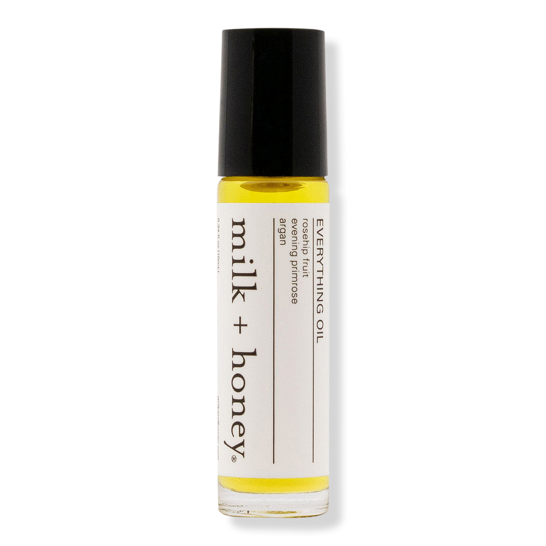 The milk + honey Everything Oil can be used for "everything:" Makeup Remover, Bath & Body Oil, Face Glow, Lip Scrub/Softener, Hair Styling Shine, Hydrating Hair Oil, Cuticle Softener, Heel Softener, Shaving Oil, Baby Massage Oil