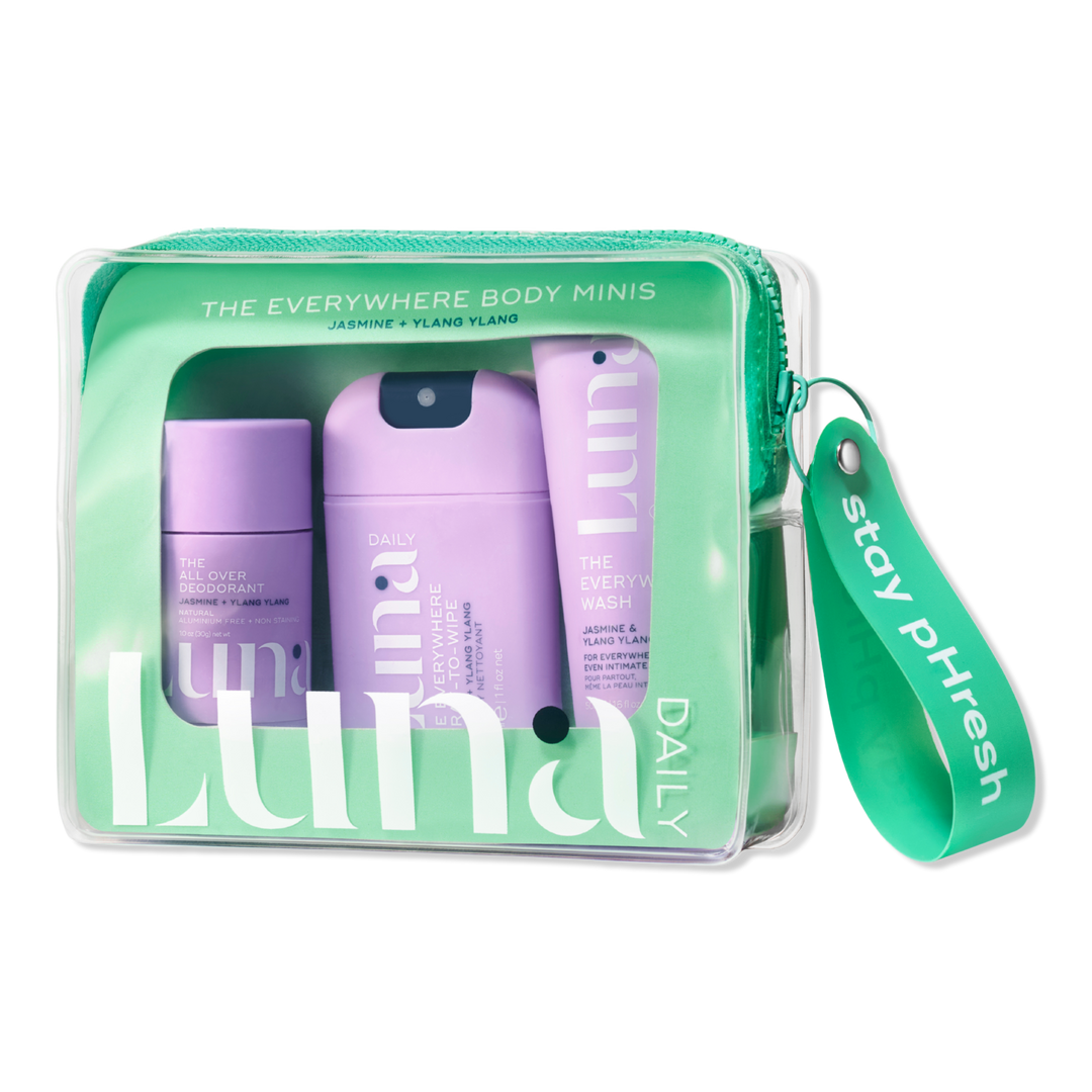 Luna Daily's The Everywhere Body Minis Kit is a best-selling, clinically tested body care routine to balance and nourish skin from head to toe. The kit includes The Hydrating Everywhere Wash™, The Spray-to-Wipe and The All Over Deodorant™ .