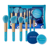 Travel light with Spectrum's Evil Eye Travel Brush Set & Puff Duo. Featuring a vibrant turquoise design, this compact set includes tools for face, eyes, and lips, complete with two velvet puffs for mattifying and setting. All packed in an on-the-go pouch adorned with a chic evil eye motif.
