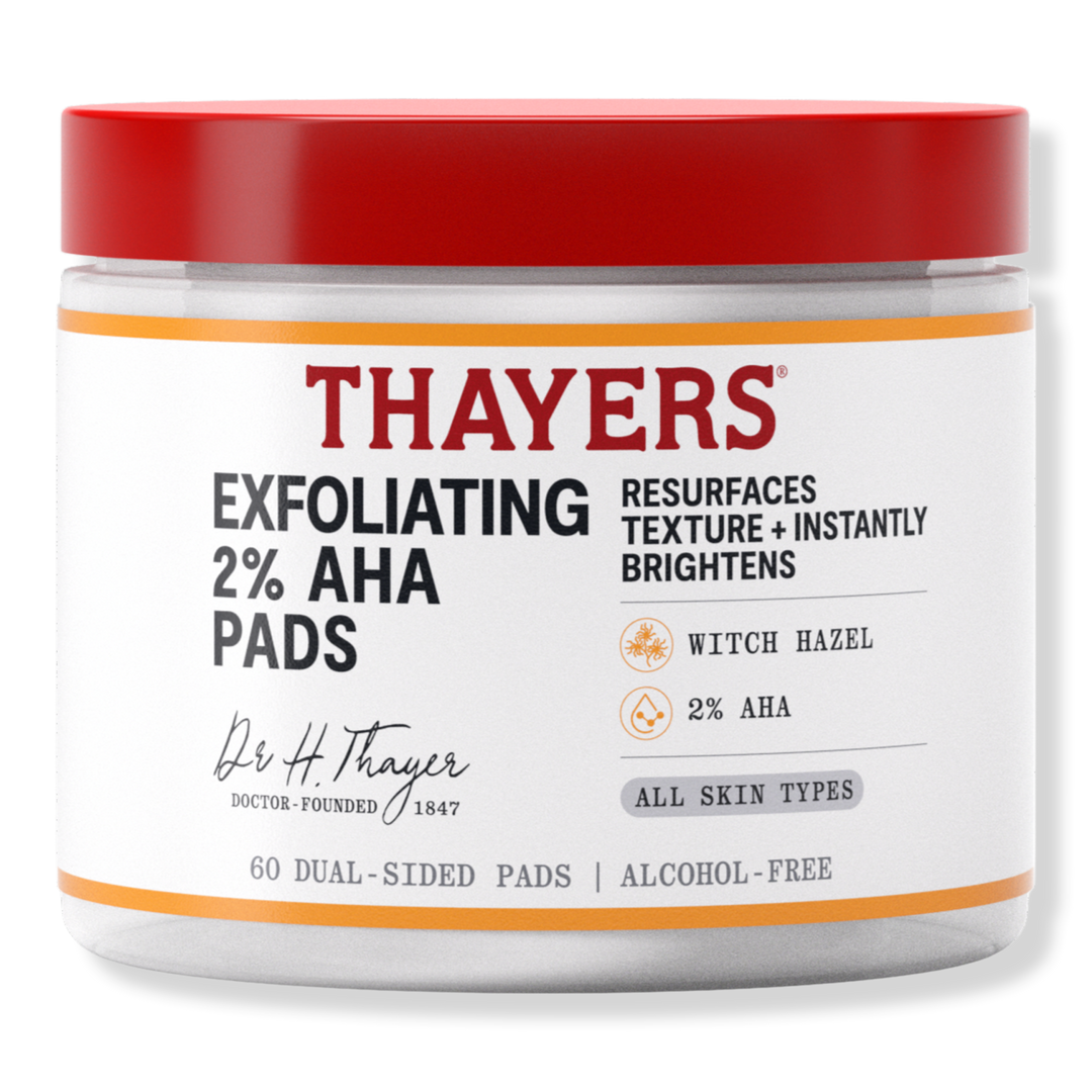 Thayers 2% AHA Pads are clinically proven to resurface, brighten, and smooth skin. They are formulated with Witch Hazel and 2% AHA to refine texture.
