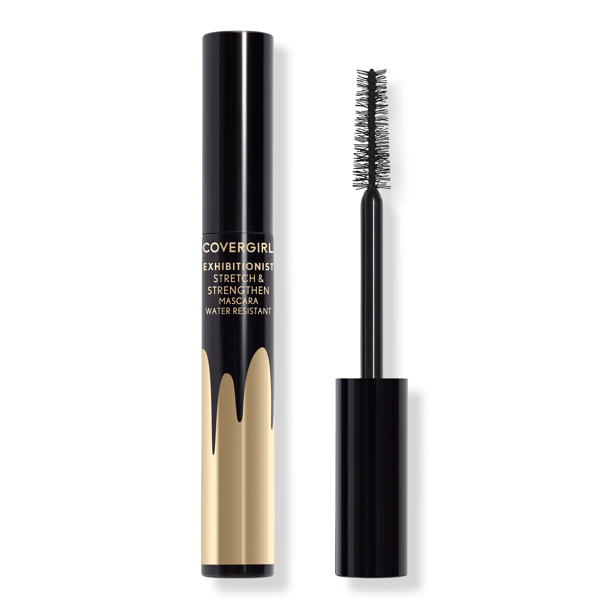 COVERGIRL Exhibitionist Stretch & Strengthening Mascara has a lash lengthening and strengthening formula infused with Peptides, Biotin and Pro-Vitamin B5. The wavy bristled, tree-shaped brush reaches every lash from root to tip, gliding the lightweight formula on without clumping.