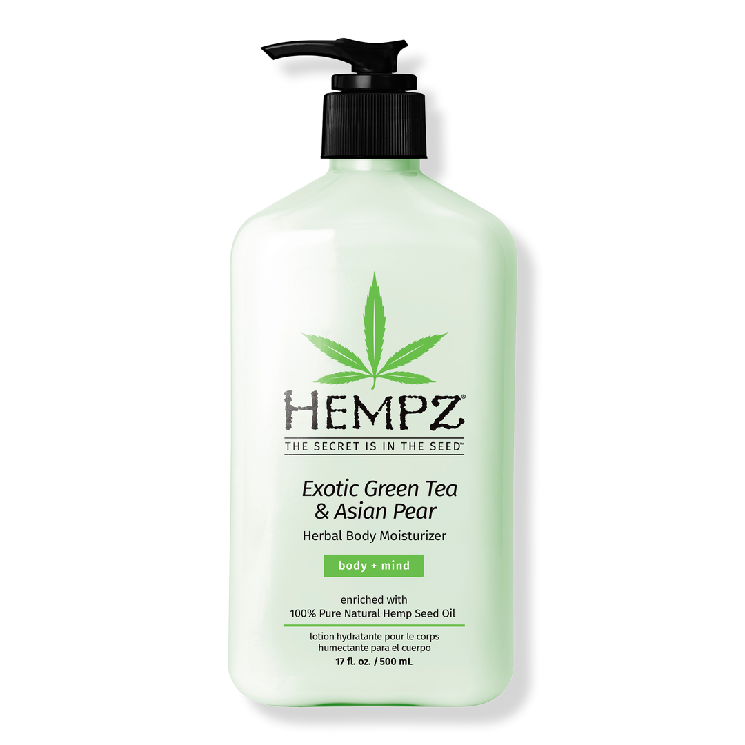 Hempz Exotic Green Tea & Asian Pear Herbal Body Moisturizer is enriched with 100% Pure Natural Hemp Seed Oil and infused with a revitalizing blend of essential extracts.