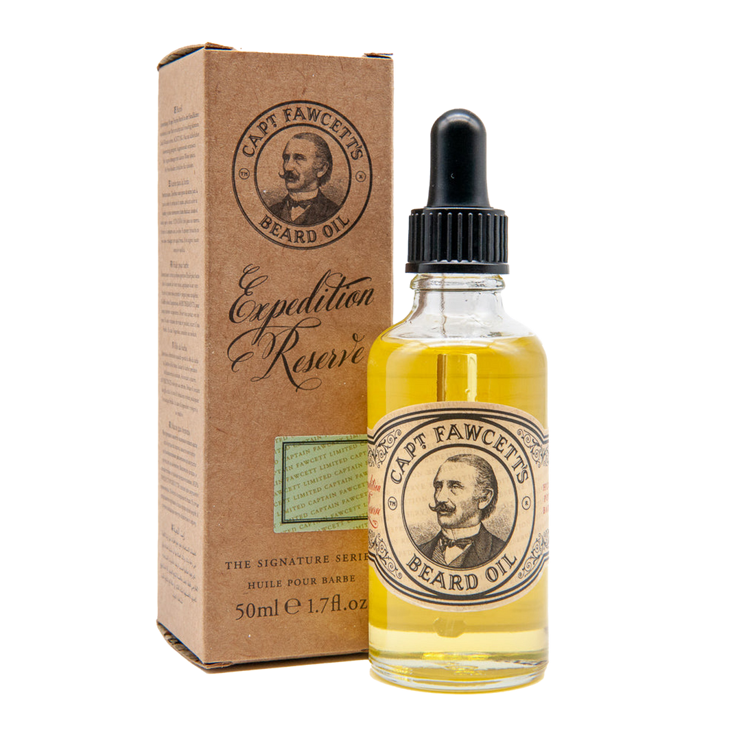 Captain Fawcett’s Expedition Reserve Beard Oil is a luxurious conditioning elixir hand-blended with the Captain’s renowned woody-spiced scent. Enriched with natural oils to moisturise both beard and skin, this formula restores softness, shine and vitality to the most weather-beaten whiskers.