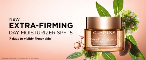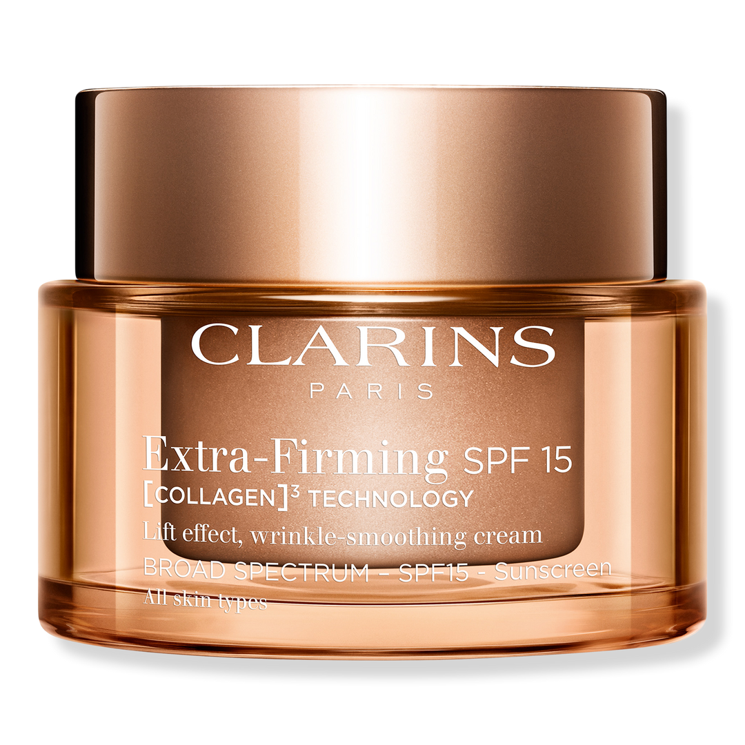 Clarins Extra-Firming Day SPF 15 Refillable Moisturizer is a firming day cream with Collagen Polypeptide, Niacinamide & SPF 15 to visibly smooth, plump, contour, brighten & even skin. Skin is visibly firmer in 7 days.*