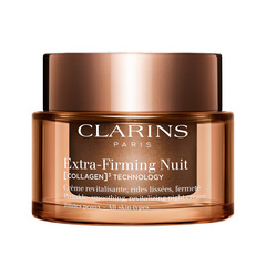 Clarins' Extra-Firming Neck & Décolleté Moisturizer visibly reduces horizontal and vertical wrinkles, skin slackening, and dark spots.