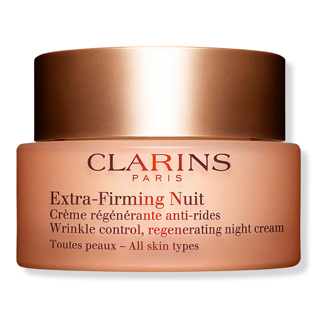 Clarins Extra-Firming & Smoothing Night Moisturizer visibly firms, tones and improves skin's elasticity with the wrinkle-fighting power of hydrated silica of Moonstone extract.