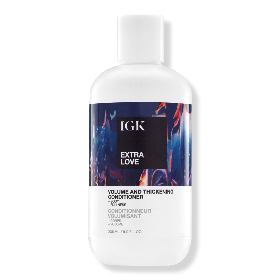 IGK's Extra Love Volume & Thickening Conditioner is a lightweight, volume-boosting conditioner that adds fullness to flat hair and hydrates without weighting it down. It fortifies the weakened hair fibers and leaves strands feeling soft and silky while also providing healthy bounce and movement.