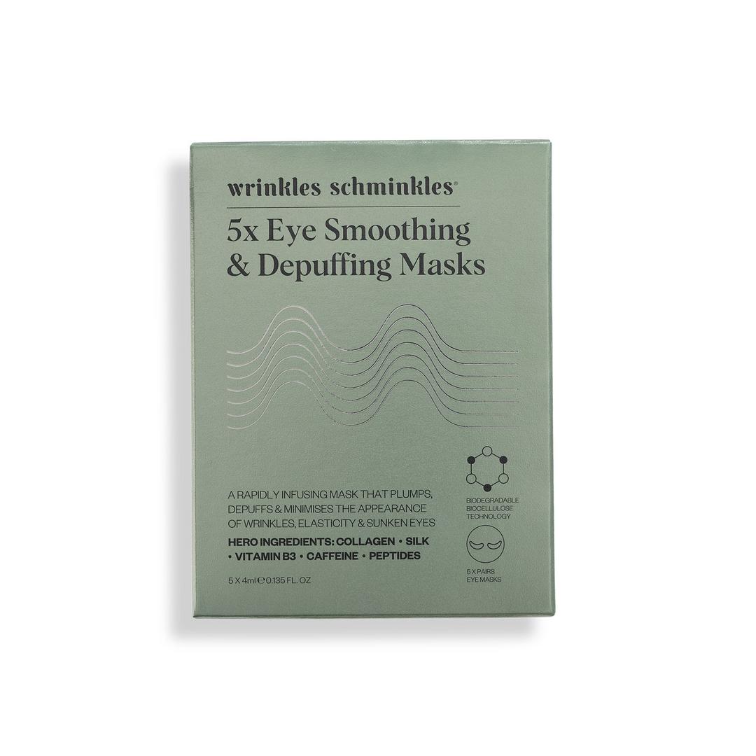 Wrinkles Schminkles Eye Smoothing & Depuffing Sheet Masks hydrate, brighten, and depuff dark under eyes in 15 minutes. Powered by marine collagen, peptides, and MYOXINOL® to target fine lines and crow’s feet. Biodegradable biocellulose fits like a second skin for fast absorption.