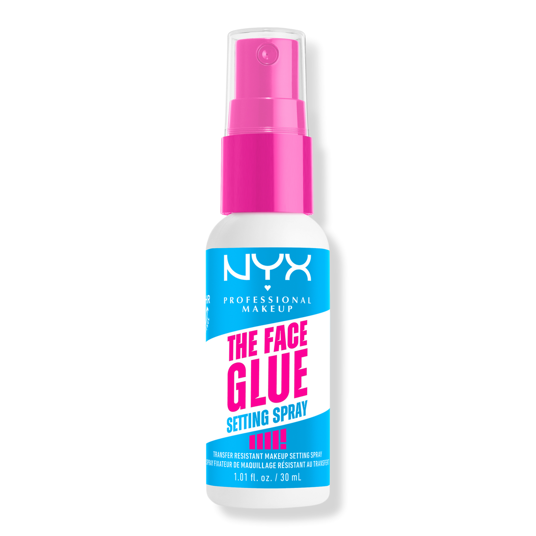 Get glued with NYX Professional Makeup Face Glue Setting Spray! Locks in makeup for 24 hrs. Waterproof, transfer & fade-resistant, boosts color, with no sticky finish!